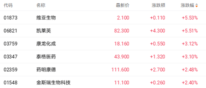 双重利好提振医药股 维亚生物和凯莱英均涨超5%