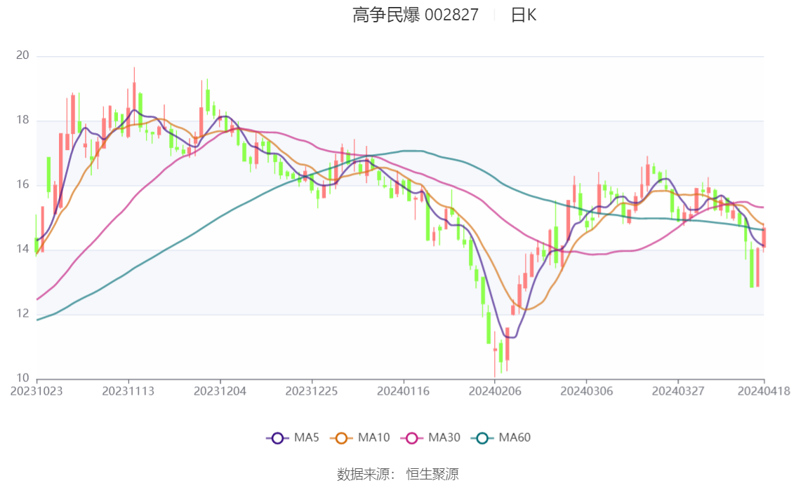 以4月18日收盘价计算,高争民爆目前市盈率(TTM)约为41.42倍,市净率(LF)约为4.94倍,市销率(TTM)约为2.61倍。