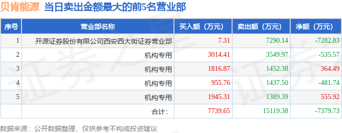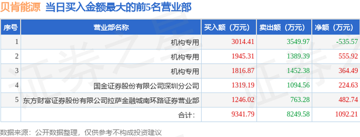 10月23日贝肯能源(002828)龙虎榜数据:机构净卖出96.9万元