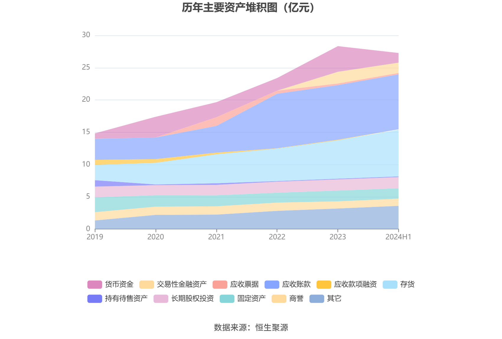 资产重大变化方面,截至2024年上半年末,公司货币资金较上年末减少62.46%,占公司总资产比重下降8.55个百分点;存货较上年末增加21.14%,占公司总资产比重上升5.44个百分点;应收账款较上年末增加0.57%,占公司总资产比重上升1.36个百分点;其他流动资产较上年末增加35.01%,占公司总资产比重上升1.03个百分点。