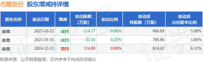 该股近半年内有股东持股变动,合计净减持32.93万股,股东增减持明细如下表: