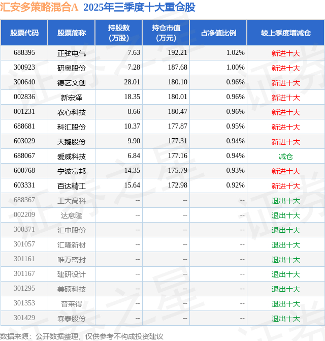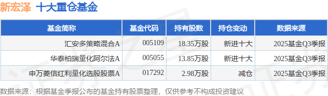 根据2025基金Q3季报公募基金重仓股数据,重仓该股的公募基金共3家,其中持有数量最多的公募基金为汇安基金的汇安多策略混合A。汇安多策略混合A目前规模为0.84亿元,最新净值1.6955(1月15日),较上一交易日上涨0.1%,近一年上涨64.79%。该公募基金现任基金经理为柳预才。柳预才在任的基金产品包括:汇安宜创量化精选混合A,管理时间为2020年12月30日至今,期间收益率为29.09%;汇安中证500增强A,管理时间为2022年12月23日至今,期间收益率为46.11%;汇安多因子混合A,管理时间为2023年5月29日至今,期间收益率为51.04%;