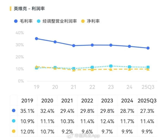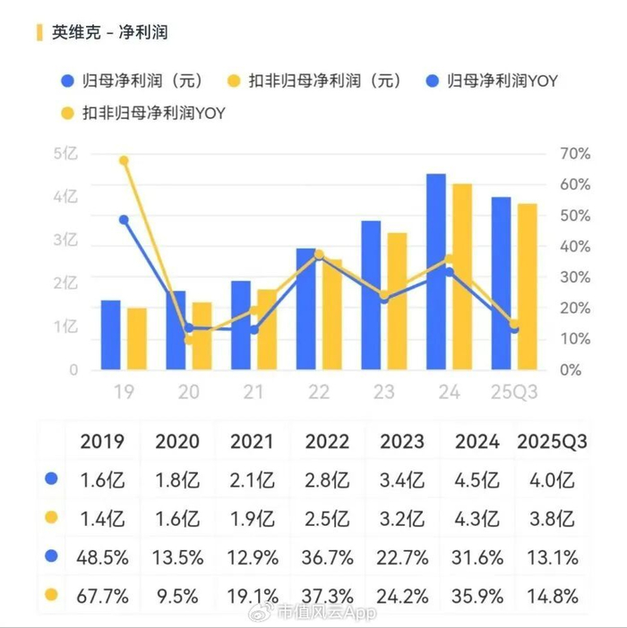 当然,这不是说英维克的利润不增,但其13.13%的利润增速显然远不及同期40.19%的营收增速,甚至不足三分之一,且较之前两年也有大幅放缓。