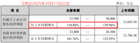 但令人意外的是,飞荣达的表现同样不俗。10月13日的三季度业绩预告显示,2025年前三季度净利润预计在2.75亿-3亿之间,同比增速高达110.8%-129.96%。单看增速,飞荣达比英维克还要猛。