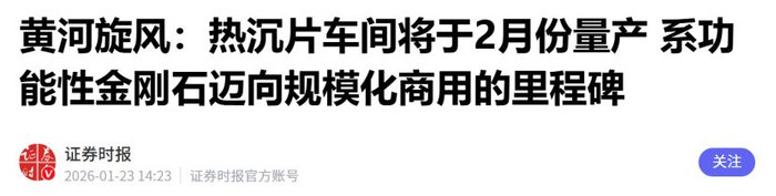 第三,公司已经成功研制出国内可量产的最大8英寸热沉片,将于今年2月份投入量产,这是功能性金刚石从实验室,迈向规模化商业应用的一个里程碑。目前已经是2月份 ,意味着当前已经处于量产中。