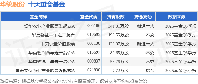 重仓华统股份的公募基金请见下表: