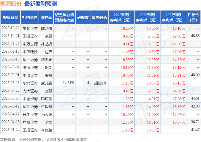 证券之星数据中心根据近三年发布的研报数据计算,东北证券武芃睿研究员团队对该股研究较为深入,近三年预测准确度均值为14.51%,其预测2025年度归属净利润为盈利11.16亿,根据现价换算的预测PE为25.44。