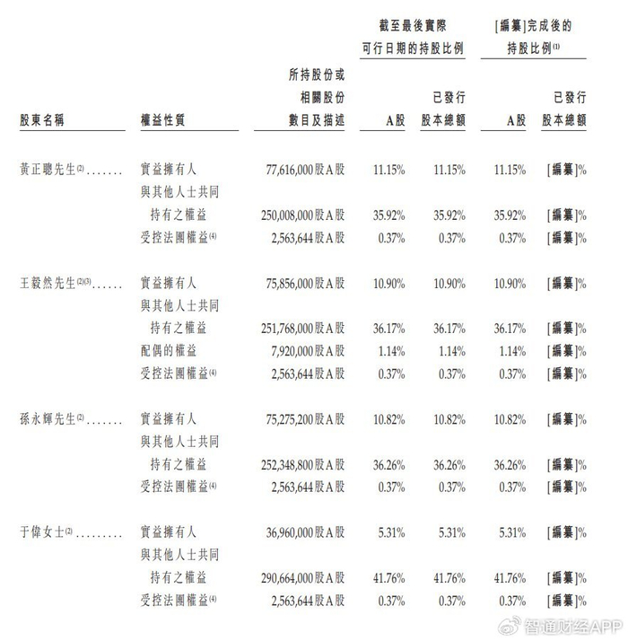 招股书提到,于[编纂]后,黄正聪先生、王毅然先生、孙永辉先生、于伟女士、周开琪先生及尤天远先生将共同构成香港上市规则所指的一组控股股东。