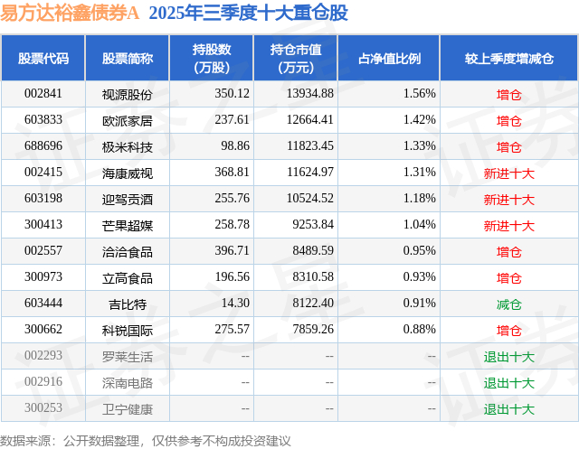 根据2025基金Q3季报公募基金重仓股数据,重仓该股的公募基金共16家,其中持有数量最多的公募基金为易方达基金的易方达裕鑫债券A。易方达裕鑫债券A目前规模为48.99亿元,最新净值1.8046(1月9日),较上一交易日上涨0.7%,近一年上涨21.82%。该公募基金现任基金经理为胡文伯。胡文伯在任的基金产品包括:易方达鑫转招利混合A,管理时间为2023年3月16日至今,期间收益率为29.86%;易方达磐固六个月持有期混合A,管理时间为2023年6月21日至今,期间收益率为7.09%。