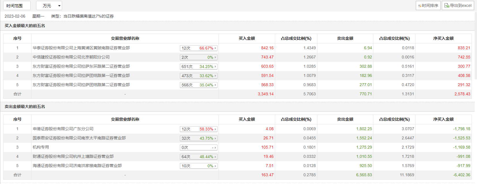 2月6日,翔鹭钨业今日跌停,龙虎榜数据显示,上榜营业部席位全天成交1.08亿元,占当日总成交金额比例为18.48%。其中,买入金额为3512.61万元,卖出金额为7336.54万元,合计净卖出3823.93万元。