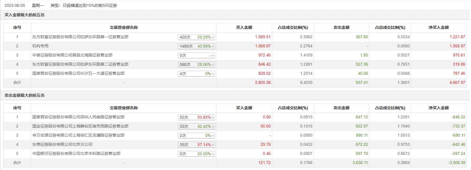 具体来看,机构合计净买入1568.97万元。此外,知名游资现身龙虎榜,著名刺客(东莞证券股份有限公司北京分公司)净卖出642.46万元。此外,东方财富证券拉萨东环路第一证券营业部、中泰证券昌邑北海路证券营业部分别买入1589.51万元、972.46万元;国泰君安证券深圳人民南路证券营业部、国金证券上海静安区南京西路证券营业部分别卖出847.12万元、822.97万元。