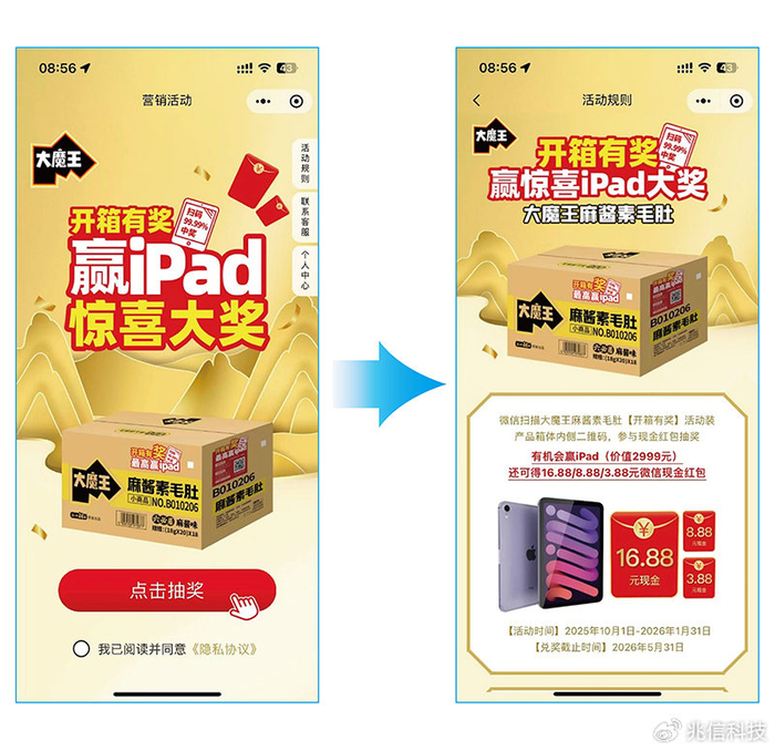 零门槛用户触达:产品即入口,消费者在购买后扫码兑奖,企业可零成本、无感知地完成与用户的首次连接;
