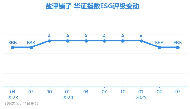 日前,华证指数公布了新一期(2025年7月31日)的ESG评级结果,盐津铺子(002847.SZ)获得BBB评级(华证指数评级为C起至AAA九档,C为最低档,AAA为其最高一级评级/AA为其第二档),上一期(2025年4月30日)ESG评级为BBB。本期ESG评级在156家食品行业A股上市公司中排名第13(上一期排名第13)。