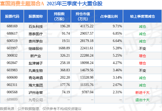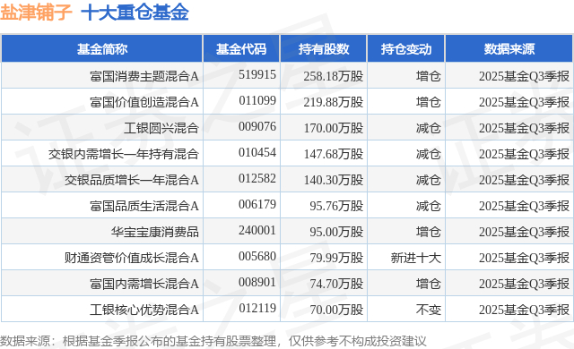 根据2025基金Q3季报公募基金重仓股数据,重仓该股的公募基金共38家,其中持有数量最多的公募基金为富国基金的富国消费主题混合A。富国消费主题混合A目前规模为31.65亿元,最新净值2.289(11月7日),较上一交易日下跌0.69%,近一年上涨0.0%。该公募基金现任基金经理为王园园。王园园在任的基金产品包括:富国品质生活混合A,管理时间为2019年3月20日至今,期间收益率为71.79%;富国内需增长混合A,管理时间为2020年3月26日至今,期间收益率为36.99%;富国价值创造混合A,管理时间为2021年1月13日至今,期间收益率为-26.12%。