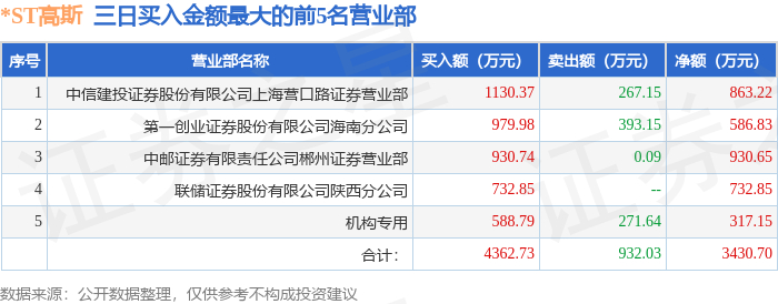 1月5日*ST高斯(002848)龙虎榜数据:机构净买入317.15万元(3日)