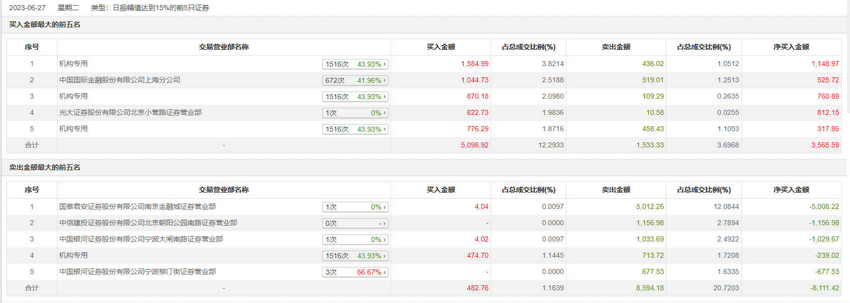 6月27日,威星智能今日跌4.67%,龙虎榜数据显示,上榜营业部席位全天成交1.57亿元,占当日总成交金额比例为37.87%。其中,买入金额为5581.68万元,卖出金额为1.01亿元,合计净卖出4545.83万元。
