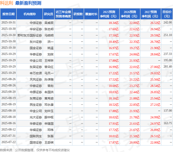 民生证券股份有限公司邓永康,席子屹,李孝鹏近期对科达利进行研究并发布了研究报告《2025年三季报点评:业绩符合预期,结构件龙头盈利能力强劲》,给予科达利买入评级。
