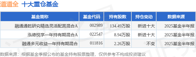 重仓道道全的公募基金请见下表: