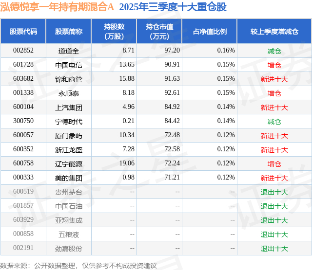 根据2025基金Q3季报公募基金重仓股数据,重仓该股的公募基金共1家,其中持有数量最多的公募基金为泓德基金的泓德悦享一年持有期混合A。泓德悦享一年持有期混合A目前规模为3.39亿元,最新净值1.0411(10月27日),较上一交易日上涨0.13%。该公募基金现任基金经理为赵端端。赵端端在任的基金产品包括:泓德裕荣纯债债券A,管理时间为2018年9月25日至今,期间收益率为27.83%;泓德裕祥债券A,管理时间为2019年1月15日至今,期间收益率为33.84%;泓德睿享一年持有期混合A,管理时间为2020年6月24日至今,期间收益率为41.91%;泓德裕泰债券A,管理时间为2021年6月18日至今,期间收益率为24.87%。