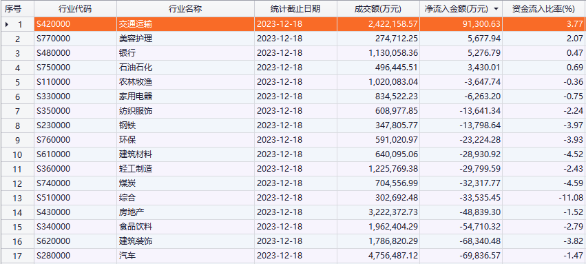 上证报中国证券网讯 Choice数据统计,昨日A股主力资金净流出327.79亿元;行业方面,交通运输净流入居首,为9.13亿元,美容护理净流入0.57亿元,银行净流入0.53亿元;净流出金额最多的是传媒,高达67.49亿元,计算机净流出44.67亿元。个股方面,主力资金净流入前三的是安培龙、捷荣技术、贵州茅台,分别净流入3.87亿元、3.64亿元、2.73亿元;净流出前三的是奥飞娱乐、中文在线、中南传媒,分别净流出7.69亿元、6.39亿元、5.84亿元。