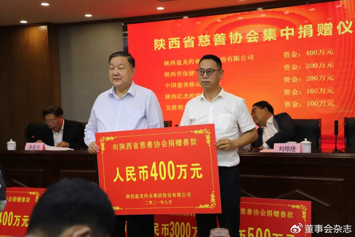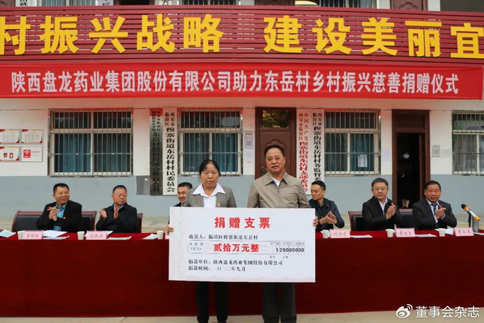 公司长期坚持慈善公益之路,以教育公益为例,在今年8月25日,由盘龙药业联合陕西上市公司协会、陕西省工商业联合会共同主办的“金秋捐资助学”活动在柞水县、镇安县两地举办。现场,盘龙药业代表及多位政府、协会负责人共同为85名高考录取的困难家庭学子发放25万元资助金,帮助他们圆梦大学。对于身处秦岭腹地的中药企业,对于教育的重视,已成为地方及企业长期发展的“人才引擎”,不仅为当地乡村振兴事业持续注入人才动能,更为盘龙药业自身人才队伍的搭建带来长期可持续的受益。