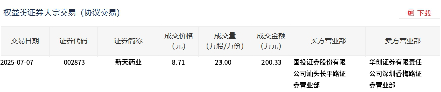 新天药业今日大宗交易折价成交23万股,成交额200.33万元