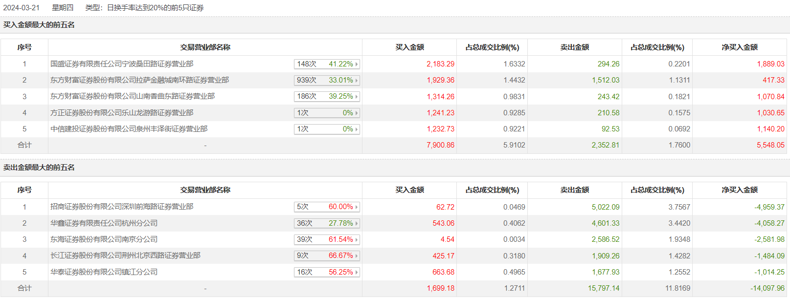安奈儿3月21日跌停,龙虎榜数据显示,上榜营业部席位全天成交2.77亿元,占当日总成交金额比例为20.76%。其中,买入金额为9600.04万元,卖出金额为1.81亿元,合计净卖出8549.91万元。