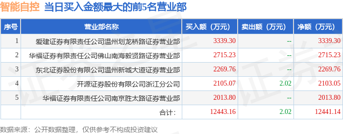 11月20日智能自控(002877)龙虎榜数据:机构净卖出1332.03万元