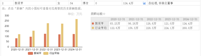 据东方财富网数据,卫光生物总经理郭采平2024年所获薪酬为124.4万元,相较上年薪酬121万元微涨。