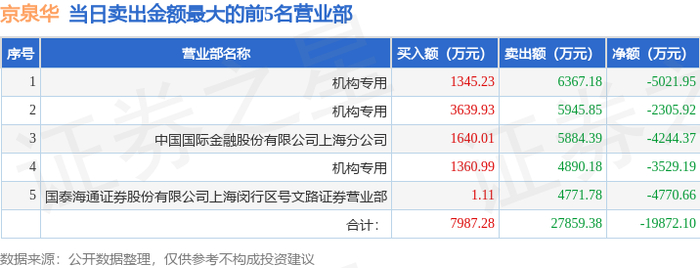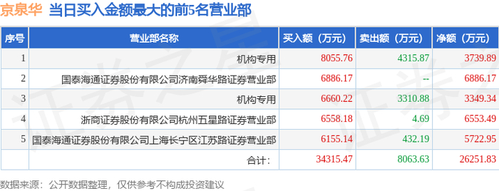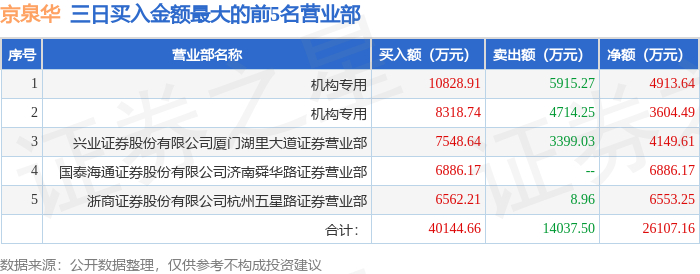 11月4日京泉华(002885)龙虎榜数据:游资章盟主、厦门湖里大道上榜