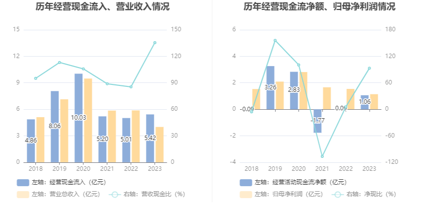 进一步统计发现,2023年公司自由现金流为-5.26亿元,上年同期为2.45亿元。