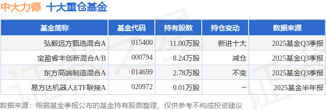 重仓中大力德的公募基金请见下表: