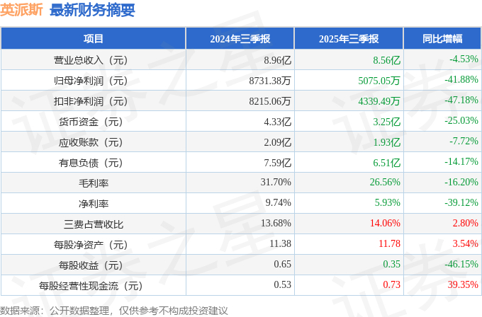 英派斯(002899)2025年三季报简析:净利润同比下降41.88%,公司应收账款体量较大