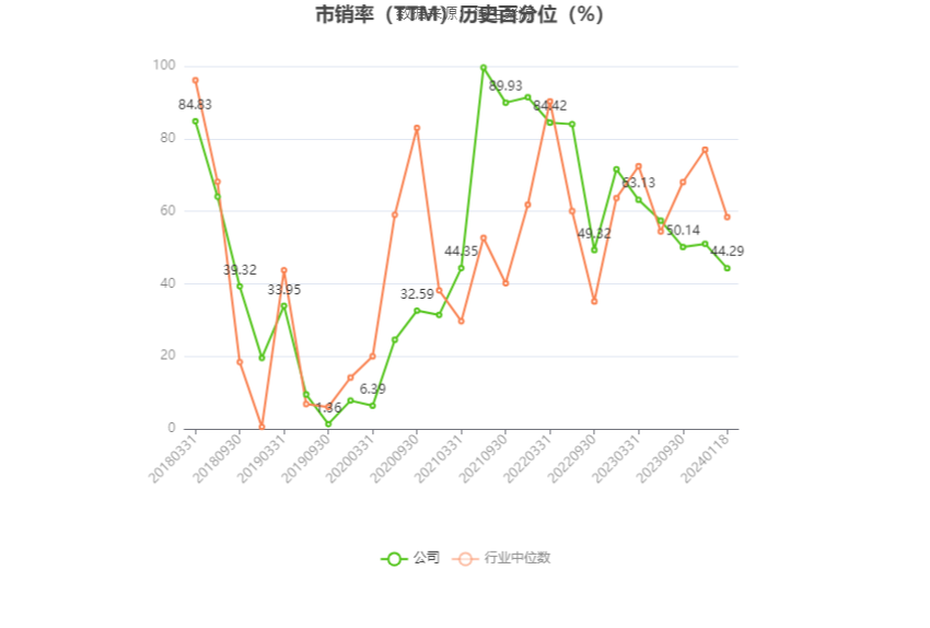 市盈率为负时,不显示当期分位数,会导致折线图中断。