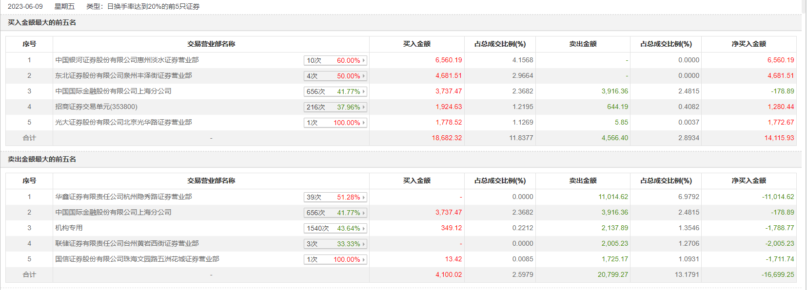 具体来看,机构买入349.12万元,卖出2137.89万元,合计净卖出1788.77万元。此外,中国银河证券惠州淡水证券营业部、东北证券泉州丰泽街证券营业部分别买入6560.19万元、4681.51万元;华鑫证券杭州隐秀路证券营业部、中国国际金融上海分公司分别卖出1.10亿元、3916.36万元。