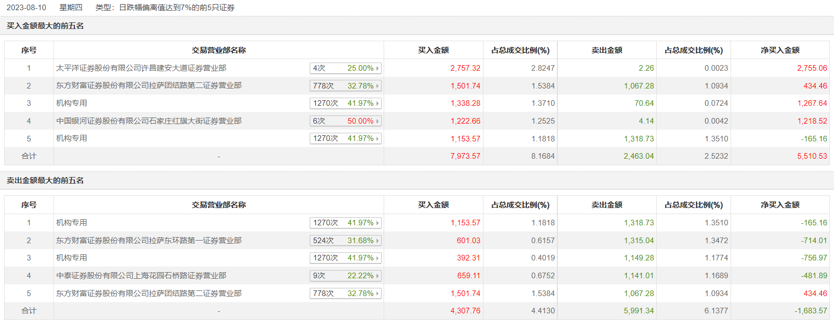 8月10日,铭普光磁今日跌停,龙虎榜数据显示,上榜营业部席位全天成交1.57亿元,占当日总成交金额比例为16.08%。其中,买入金额为9626.02万元,卖出金额为6068.37万元,合计净买入3557.65万元。