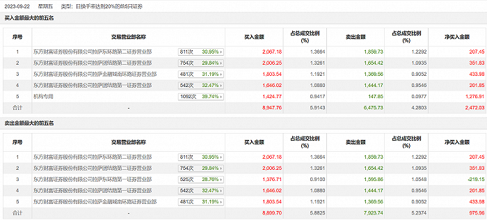 具体来看,机构买入1424.77万元,卖出147.85万元,合计净买入1276.91万元。此外,东方财富证券拉萨东环路第二证券营业部、东方财富证券拉萨团结路第二证券营业部分别买入2067.18万元、2006.25万元;东方财富证券拉萨东环路第二证券营业部、东方财富证券拉萨团结路第二证券营业部分别卖出1859.73万元、1654.42万元。