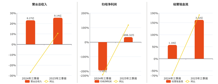 公司营业总收入为9.14亿元。归母净利润为1898.32万元。经营活动现金净流入为3.32亿元。