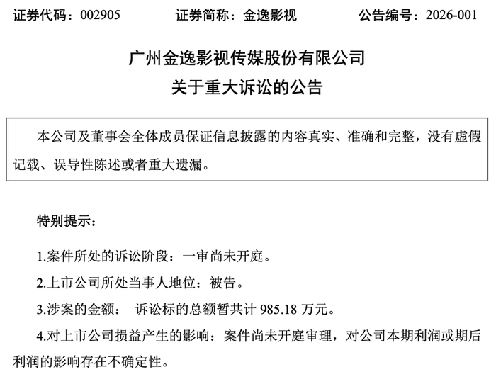2026年1月13日,深交所上市影视公司金逸影视(002905)披露的重大诉讼公告显示,公司再度被深圳市宝鹰建设集团股份有限公司(下称“宝鹰公司”)告上法庭,涉案金额合计近千万元,更关键的是原告方还主张对涉案装修工程享有优先受偿权,这对于资产负债率已高达96.43%的金逸影视而言,无疑是雪上加霜。