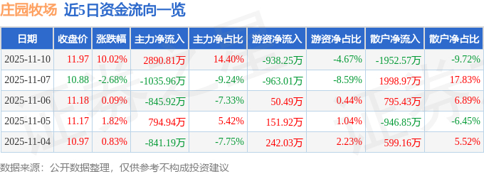 11月10日庄园牧场(002910)涨停分析:治理优化、减亏显著、新业务拓展驱动