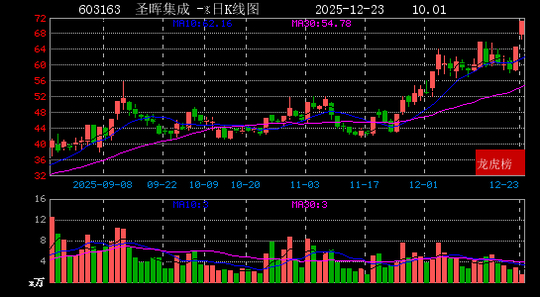 截止收盘,圣晖集成报收71.01元/股,涨幅10.01%,成交量1万手,成交额0.95亿元,换手率1.38%。今日2板。