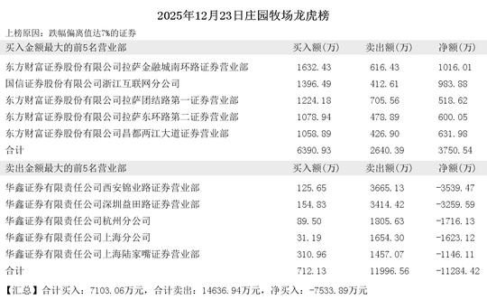 买入前5席为:东方财富证券股份有限公司拉萨金融城南环路证券营业部、国信证券股份有限公司浙江互联网分公司、东方财富证券股份有限公司拉萨团结路第一证券营业部、东方财富证券股份有限公司拉萨东环路第二证券营业部、东方财富证券股份有限公司昌都两江大道证券营业部。共计买入:6390.93万元,共计卖出:2640.39万元。