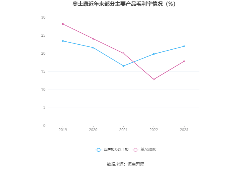 分产品看,四层板及以上板、单/双面板2023年毛利率分别为22.07%、17.90%。