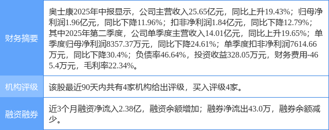2025年8月15日,开源证券研究员陈蓉芳,刘琦发布了对奥士康的研报《公司信息更新报告:业绩阵痛期已过,高端产能扩产成长可期》,该研报对奥士康给出“买入”评级。研报中预计2025-2027年归母净利润为5.25/7.45/9.87亿元(原值为5.66/8.33亿元),EPS为1.66/2.35/3.11元,当前股价对应PE为24.2/17.1/12.9倍,我们看好公司AI、汽车电子等领域发展空间,维持“买入”评级。证券之星数据中心根据近三年发布的研报数据计算,该研报作者对此股的盈利预测准确度为76.44%。