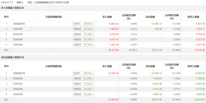 德赛西威7月10日涨停,成交额21.77亿元,换手率3.96%,盘后龙虎榜数据显示,深股通专用席位买入1.26亿元并卖出2.25亿元,四机构专用席位净买入2.29亿元,四机构专用席位净卖出2.02亿元。