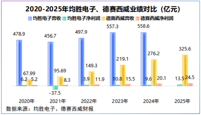 2020-2024年,均胜电子营收规模几乎是德赛西威的两倍,但净利润却只有后者的一半左右。