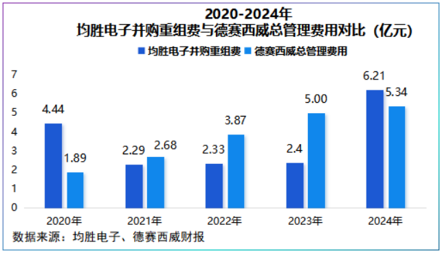 近五年,均胜电子平均重组费用为3.53亿元,甚至在2024年达到了6.21亿元,已超过了德赛西威2025年总管理费用,直接压缩了胜电子的盈利空间。