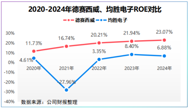 2022年以来,德赛西威净资产收益率均在20%以上,均胜电子却不到10%。
