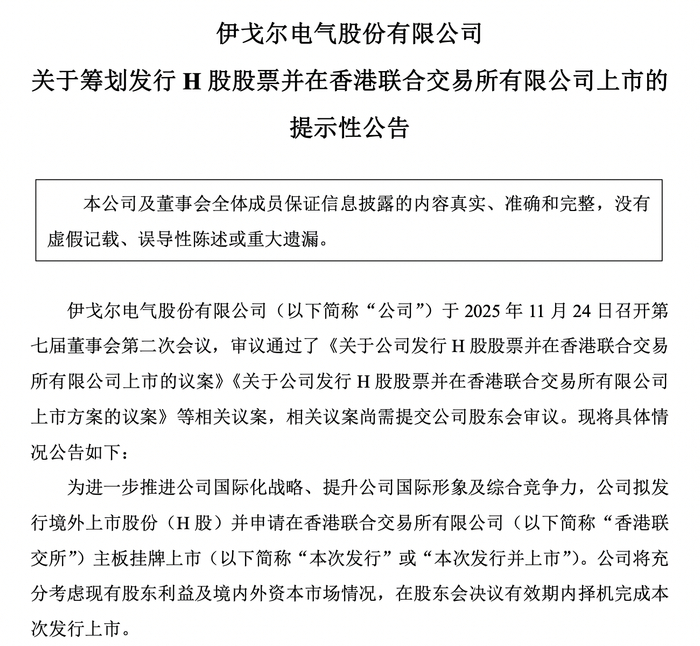 瑞财经 吴文婷11月24日,伊戈尔发布公告称,公司于当日召开第七届董事会第二次会议,审议通过了《关于公司发行H股股票并在香港联合交易所有限公司上市的议案》《关于公司发行H股股票并在香港联合交易所有限公司上市方案的议案》等相关议案,相关议案尚需提交公司股东会审议。