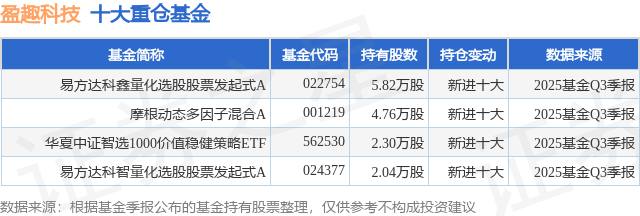 根据2025基金Q3季报公募基金重仓股数据,重仓该股的公募基金共4家,其中持有数量最多的公募基金为易方达基金的易方达科鑫量化选股股票发起式A。易方达科鑫量化选股股票发起式A目前规模为0.48亿元,最新净值1.6324(1月9日),较上一交易日上涨1.14%,近一年上涨74.83%。该公募基金现任基金经理为包正钰。包正钰在任的基金产品包括:易方达价值精选混合,管理时间为2022年9月14日至今,期间收益率为45.83%;易方达红利混合A,管理时间为2024年7月19日至今,期间收益率为27.7%;易方达科智量化选股股票发起式A,管理时间为2025年6月4日至今,期间收益率为35.89%。